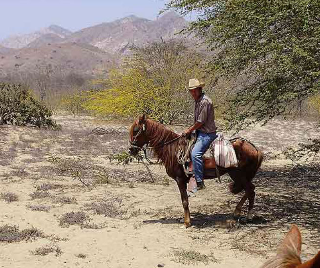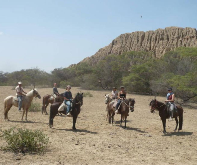 Auf dem Rücken unserer bequemen typischen Peruanischen Pasopferden reiten Sie durch die schöne Landschaft des Nordens von Peru und besichtigen den weltgrössten Trockenwald und die Pyramiden aus der Vor- und Inkazeit.